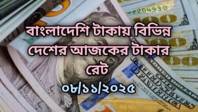 বাংলাদেশি টাকায় বিভিন্ন দেশের আজকের টাকার রেট ০৮ নভেম্বর ২০২৫