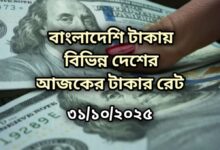 বাংলাদেশি টাকায় বিভিন্ন দেশের আজকের টাকার রেটের সর্বশেষ আপডেট